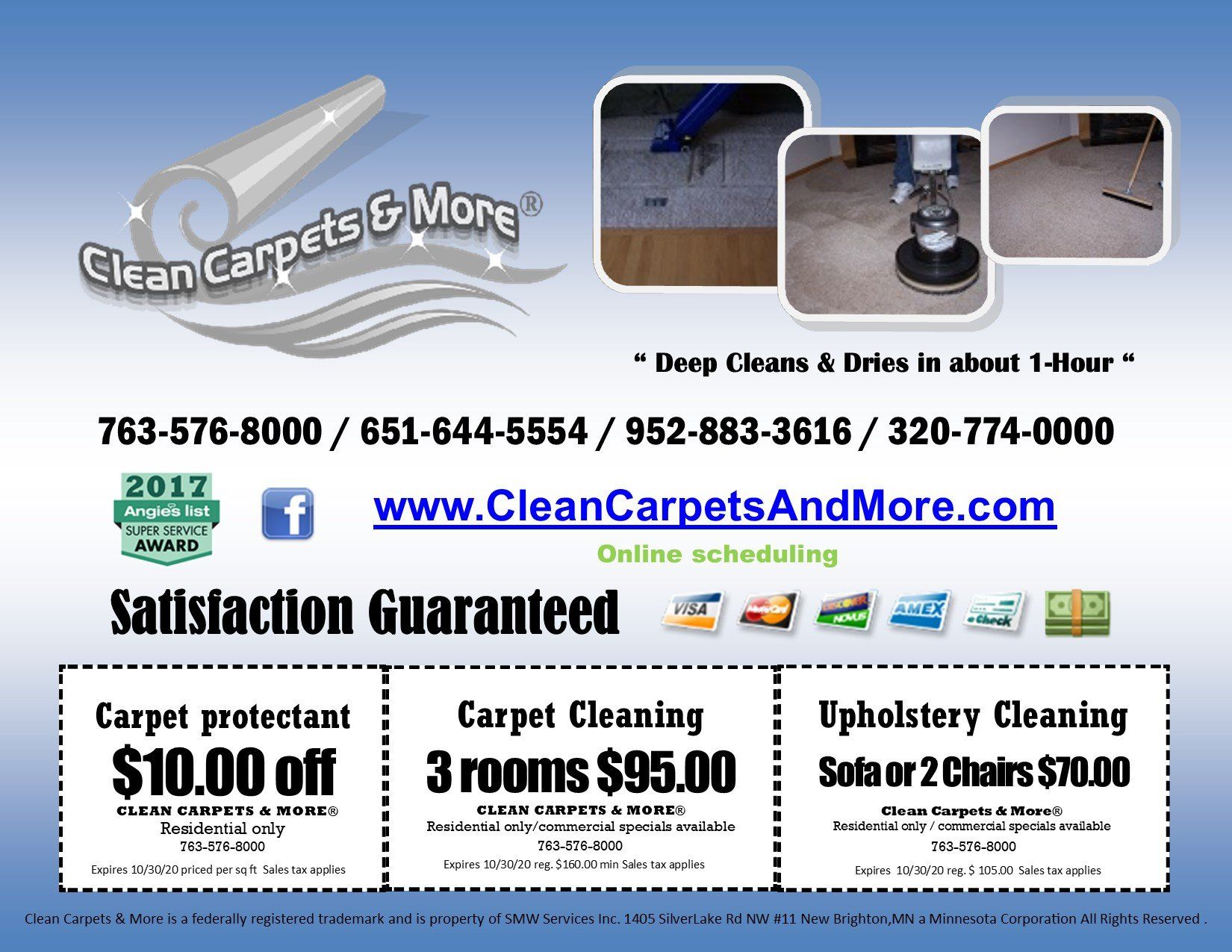 Rotory Deep Cleaning that actually applies exclusive cleansers and extracts the remaining soil on a pad at the same time allowing your carpets to dry faster , look cleaner and feel softer , for that like new look and feel.